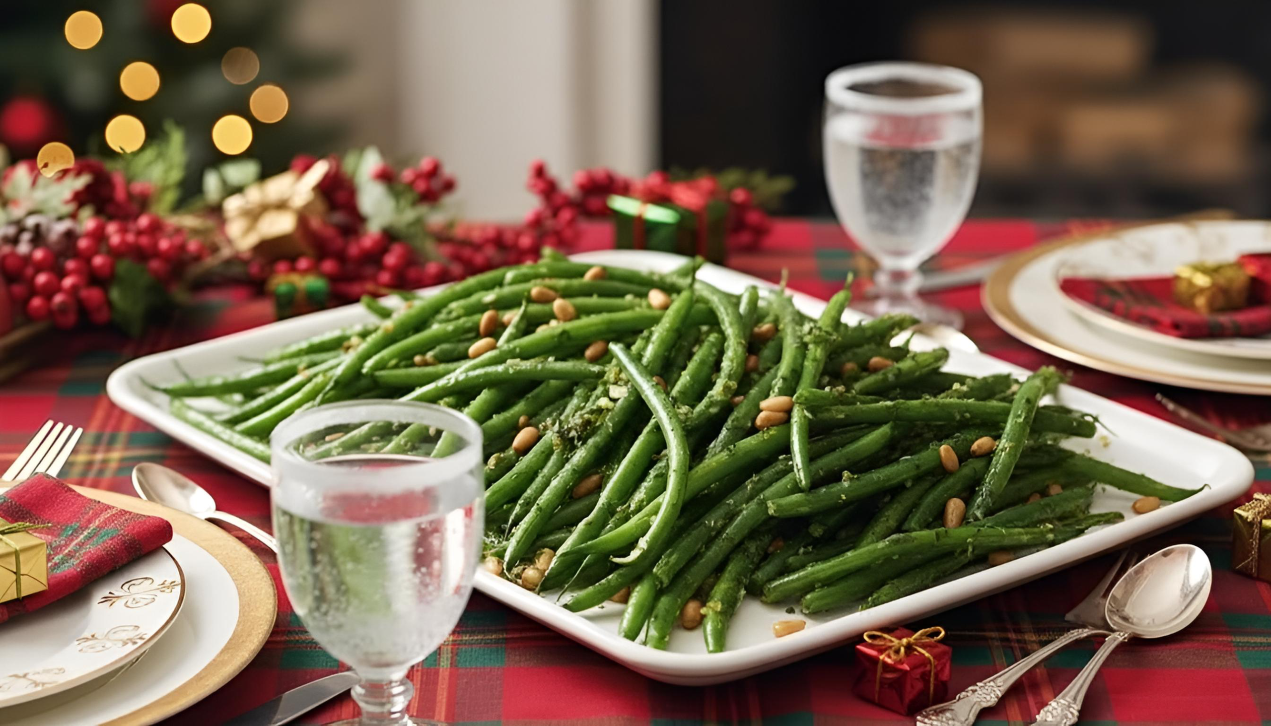 Questo contorno semplice ma raffinato completa perfettamente la tavola delle feste. I fagiolini rimangono croccanti, profumati di limone e prezzemolo, mentre i pinoli tostati e il Parmigiano aggiungono profondità e calore. È un piatto che porta equilibrio e freschezza ai sapori ricchi del pranzo di Natale — un tocco di eleganza mediterranea che non manca mai sulla nostra tavola durante le feste.